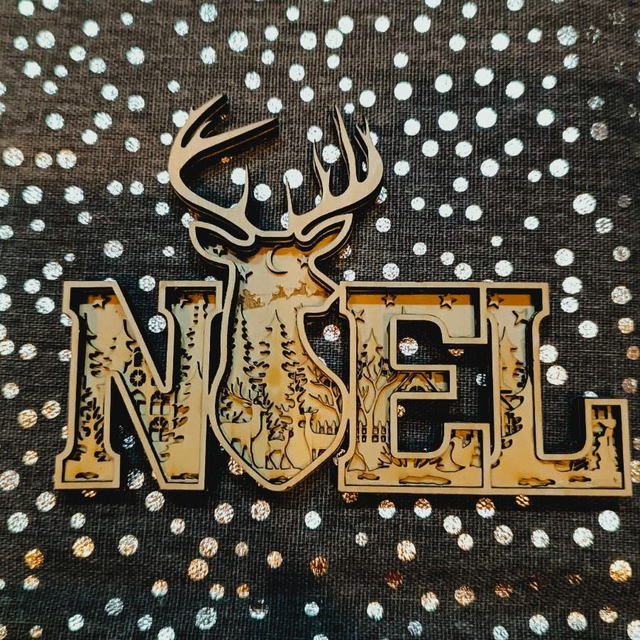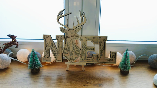 Chaque lettre révèle une scène hivernale détaillée (forêt, étoiles, maison…) avec un majestueux cerf au centre : un vrai effet waouh sur un meuble, une cheminée ou une table de fête.